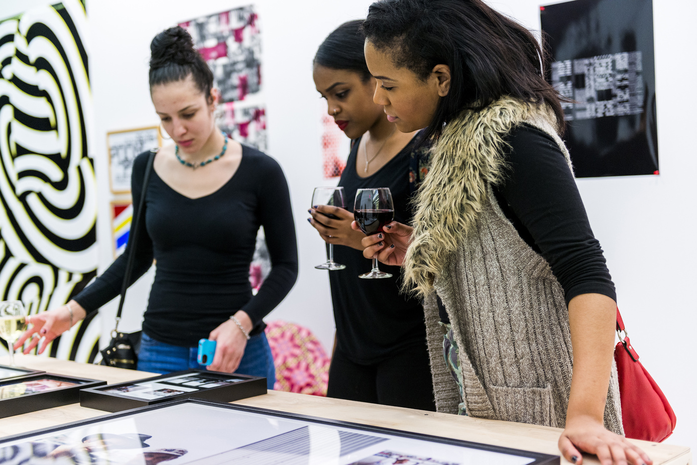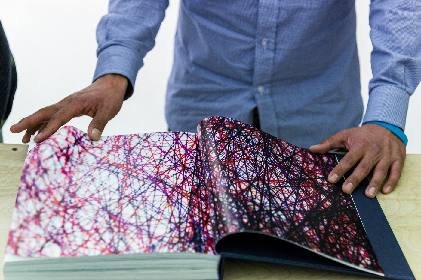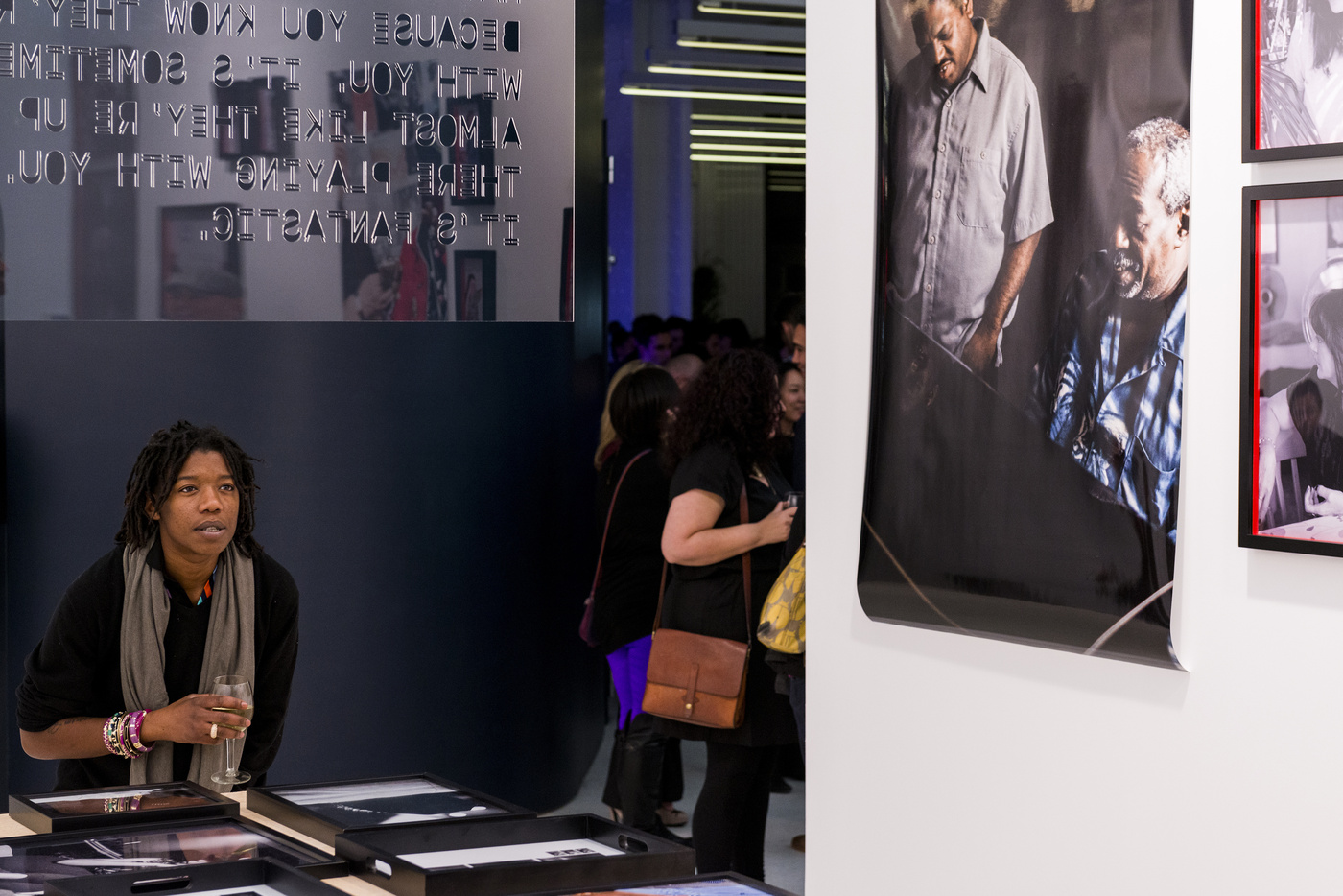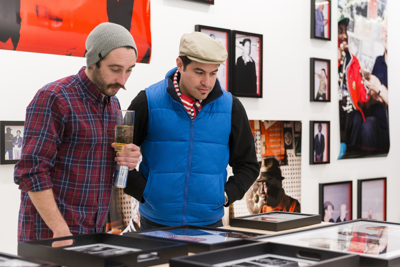 After having designed ‘For the Record’ for the RedBullMusicAcademy Many Ameri and Torsten Schmidt asked us to design the exhibition to present the book which took place in their headquarter in New York City. The space was brilliant to exhibit the illustrations and photography. The only problem we were running into was, that there was not enough wall space for the overwhelming amount of images we wanted to present. So, what we ended up with was that we were even designing the tables for the show to place more and more photographs in the exhibition (Thank you Ed Pollio for your incredible patience producing all those tables and helping with the hanging!!)…. it worked quite well.
