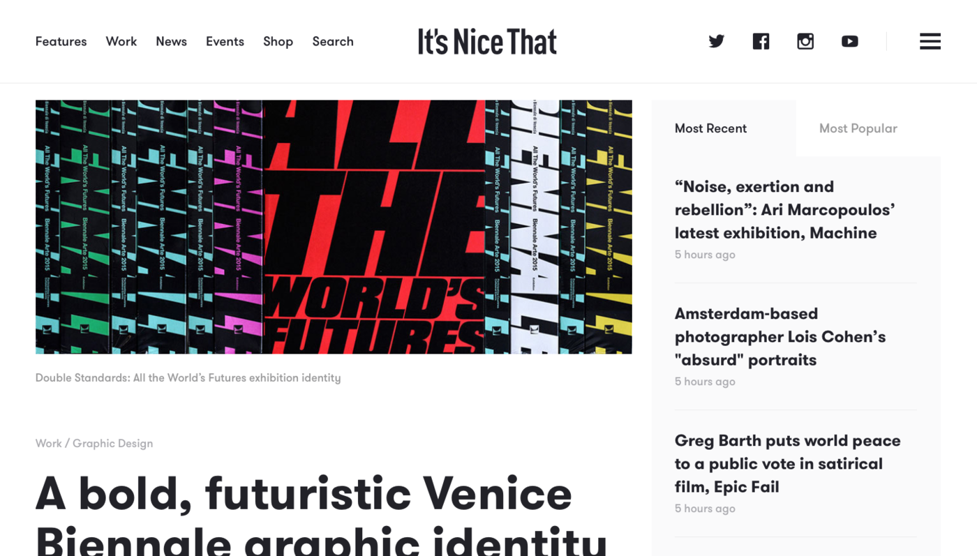 VENICE – IT’S NICE THATA bold, futuristic Venice Biennale graphic identity by Double StandardsThinks Emily Gosling at It’s Nice ThatREAD THE FULL IT’S NICE THAT ARTICLE HERETake a look at our Biennale Project here