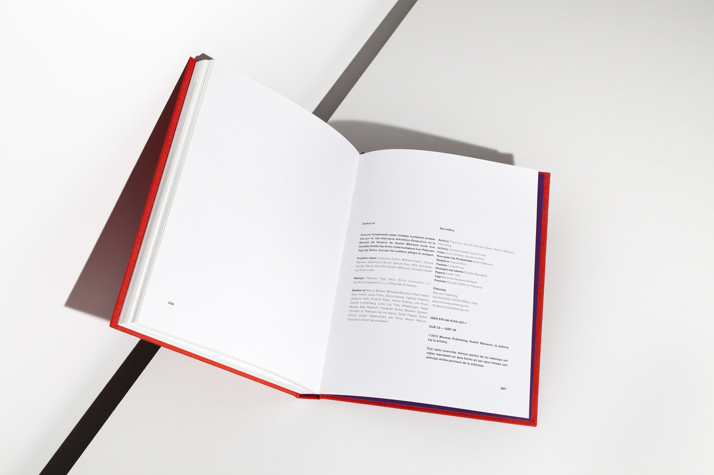 Common Ground was the title of the 14th architecture Biennale in Venice 2012 announced and curated by Sir David Chipperfield. KuehnMalvezzi were invited and they then invited us to create their book for the exhibition. They built this marvellous piece, recreating the entrance situation of the Italian pavilion with a black brick wall. Accompanied with works of Armin Linke, the ensemble made quite an impression. The book was entirely written in Esperanto. You might wonder why .... well, here is the explanation: Komuna Fundamento. Kuehn Malvezzi. Mousse Publishing.