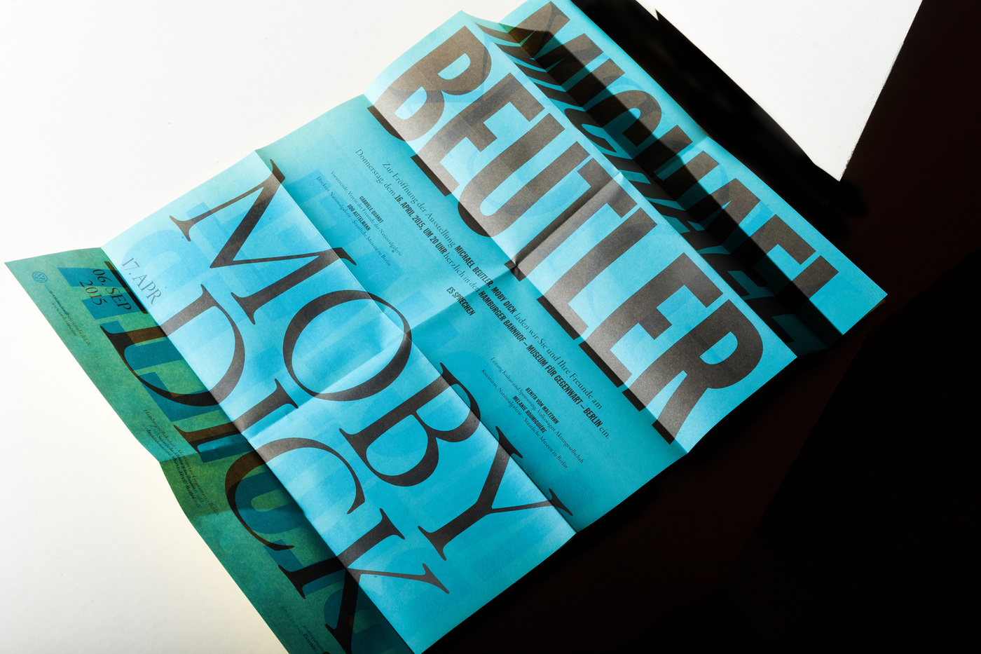 Michael Beutler’s exhibition – Moby Dick – at the Hamburger Bahnhof – Berlin keeps changing its appearance since Michael is constantly rebuilding and rearranging his pieces left and right. An absolute must see. We created this campaign, playing with the title and name of the artist as he does with his work in the show. The floor-plan keeps changing – we try to keep up with Michael’s living piece.